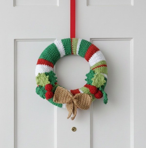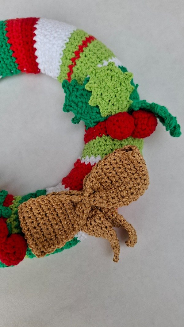 Aro tejido en crochet navideño para decorar puerta. Medidas aprox 22 cm diámetro