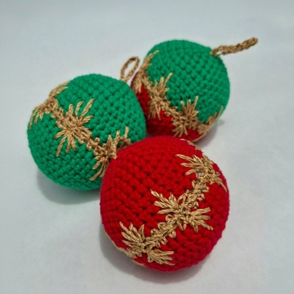 Bolitas navideñas tejidas en crochet. Diámetro aprox 7 cm. Set x 3 unidades