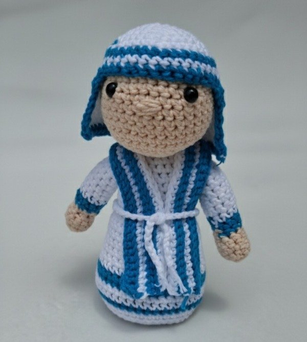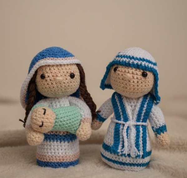 Jesús, José y María realizados en crochet. Medidas aprox. María y José 18 x 6 cm. Jesús 8 x 3,5 cm