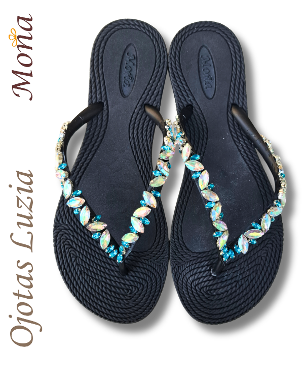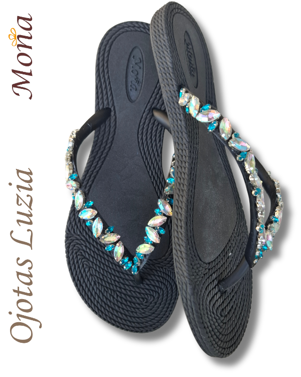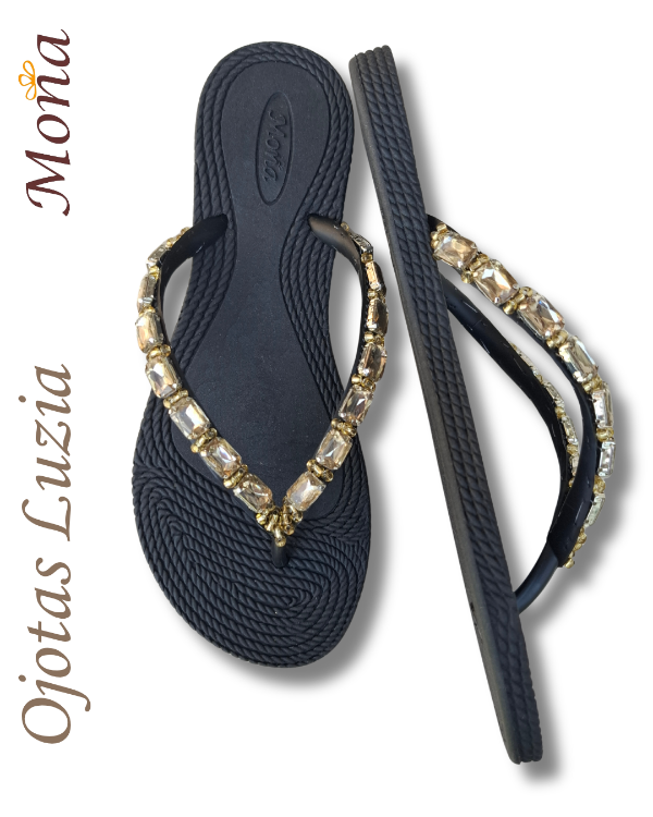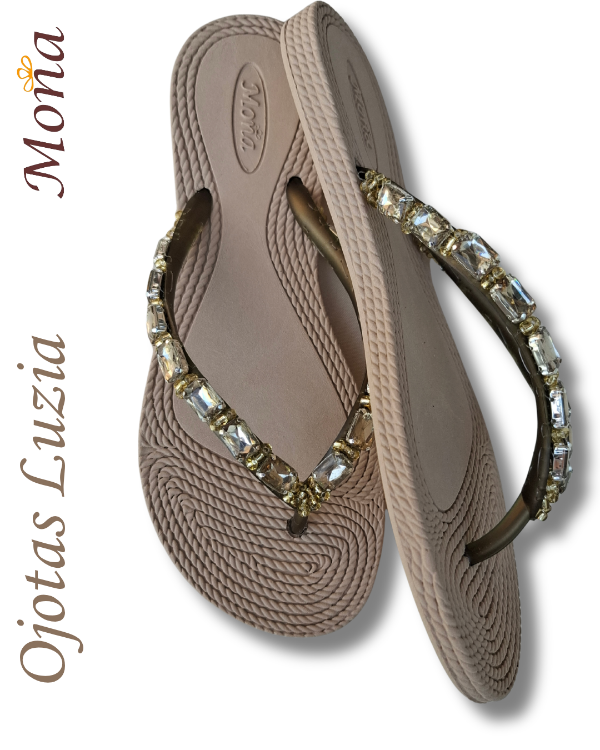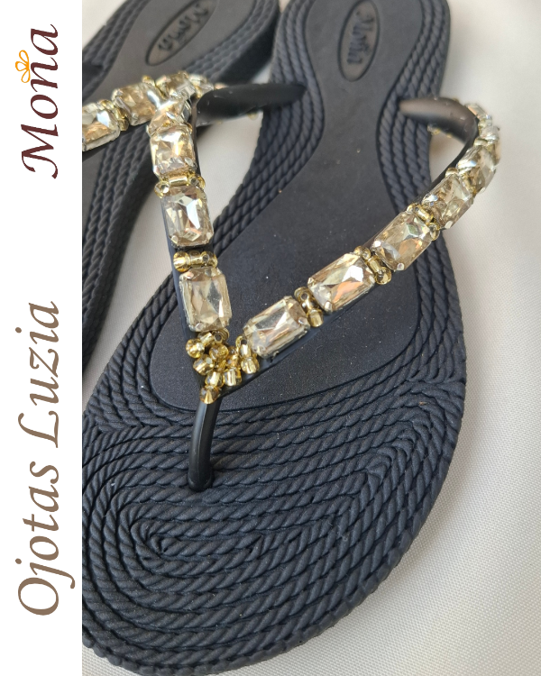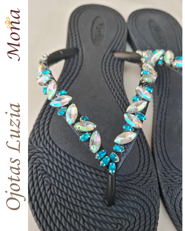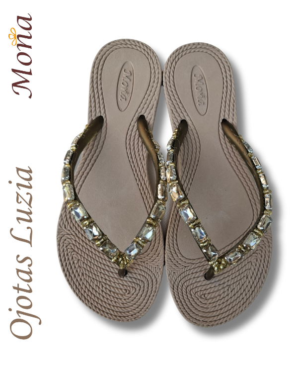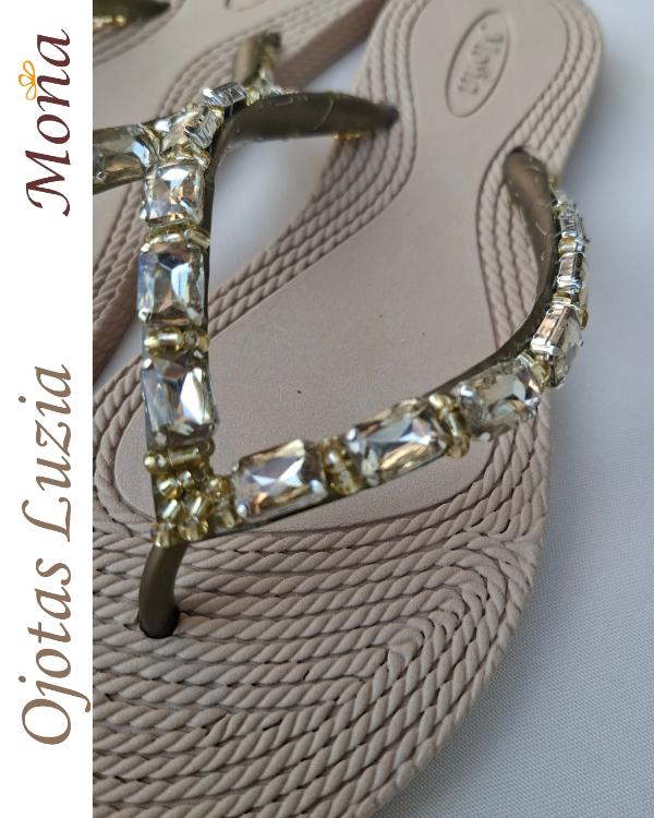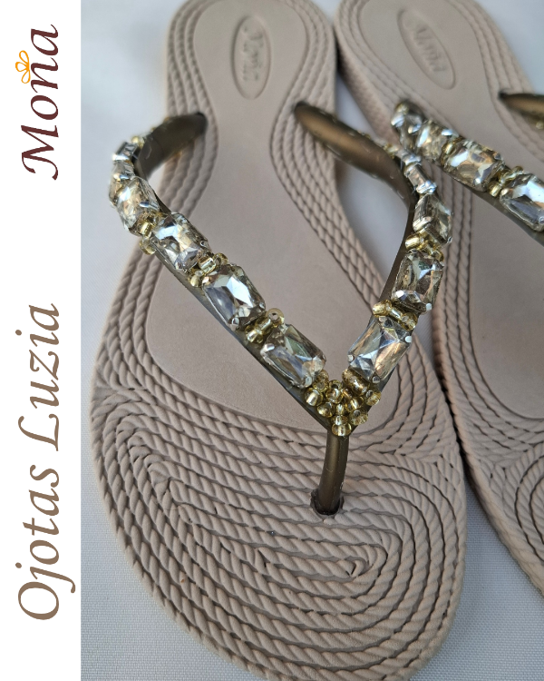 Ojotas bordadas en gemas. Disponible en 3 modelos. En la guía de talles pides verificar el tuyo, o consultanos por WhatsApp